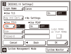 Before you select the IEEE802.1X Settings, make sure that the required key pairs and digital certificates are registered in the machine. (Managing Key Pairs and Digital Certificates)