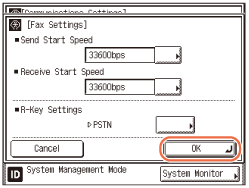 (Additional Functions) → [System Settings] → [Communications Settings] → [Fax Settings] → [R-key Settings].