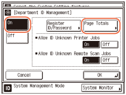 (Additional Functions) → [System Settings] → [Department ID Management].