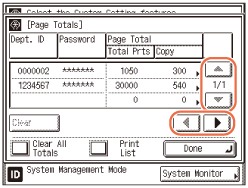 ] or [ ] to display the desired Department ID → press [ ] or [ ] to display and view the desired page totals.![]() |
