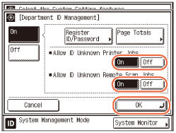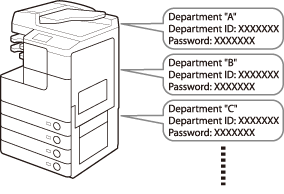 The machine does not accept print jobs that do not correspond with a registered Department ID, and you must enter a Department ID and password to operate the machine.