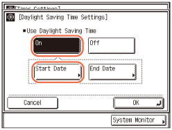 Ange startdatum (månad, vecka och dag) för sommartid med listrutorna → tryck på [OK].