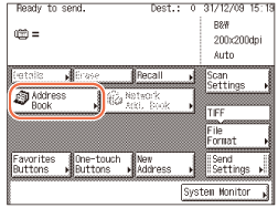 (Tilläggsfunktioner) → [Adressboksinställningar].![]() Om ett lösenord har ställts in för adressboken, ange lösenordet med hjälp av