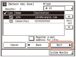 Tryck på [Nästa] när du vill registrera den valda mottagaren.