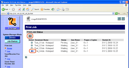 End Users can delete their own print jobs, when the Permit End-user’s Job Operation setting is enabled. (To specify the System Manager's ID and System Password:)