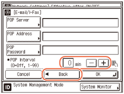 Use [-] or [+] to set [POP Interval] at the interval you want the POP server to check for incoming e-mails.