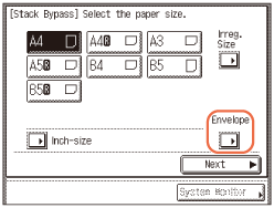 Щоб відновити збережений розмір, натисніть кнопку [Size 1] або [Size 2] → натисніть кнопку [OK] і перейдіть до наступного кроку, щоб зазначити тип паперу.