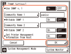 Press [Off] for <Use SNMP v. 1> → [OK].