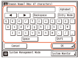 Press [Domain Name] → enter the network domain name of the machine → press [OK].