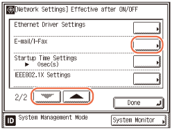 Changes made to E-mail/I-Fax settings become effective when the machine is restarted. To restart the machine, turn it OFF, wait at least 10 seconds, and then turn it ON. For instructions on how to turn the machine ON and OFF, see Chapter 2, “Before You Start Using the Machine,” in the User’s Guide.