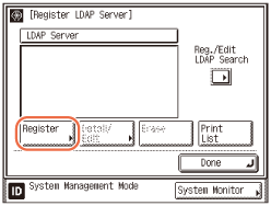 Press [] or [] until [Register LDAP Server] appears → press [Register LDAP Server].