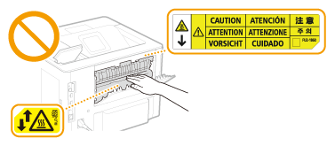 The inside of the machine and the output slot are very hot during and immediately after use. Avoid contact with these areas to prevent burns. Also, printed paper may be hot immediately after being output, so use caution when handling it. Failure to do so may result in burns.