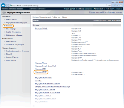 [Réglages SNMP].