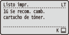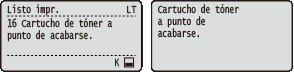 Si aparece el mensaje <Cartucho de tóner a punto de acabarse.>, la impresión se detendrá temporalmente. Para reanudar la impresión, pulse