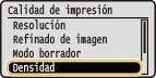 Seleccione <Densidad (Aju. fino)>, y pulse