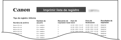 Puede imprimir un registro de documentos impresos desde el ordenador en forma de lista.