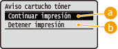 Especifique durante cuánto tiempo, en segundos, tiene que aparecer un mensaje cuando se modifique una opción. Si selecciona <Off>, el mensaje ya no aparecerá.