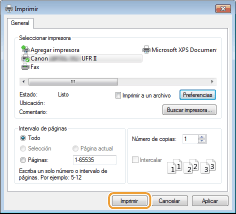 [ [Imprimir]Si imprime utilizando este método, únicamente se encontrará disponible un número limitado de opciones de impresión.