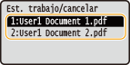 Cancelación desde la IU remotaPuede cancelar la impresión desde la página [Estado de trabajos] de la IU remota: Comprobación del estado actual de los documentos de impresión