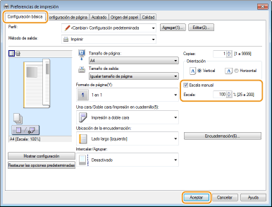 Las opciones de ampliación/reducción de algunas aplicaciones tienen prioridad con respecto a las del controlador de impresora.