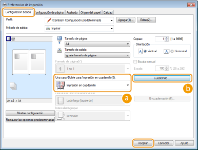 Haga clic en [Cuadernillo] para especificar la configuración detallada en caso necesario