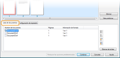 En la lista [Nombre documento], seleccione los documentos que desee combinar y haga clic en