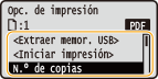 Puede imprimir archivos de imagen (PDF, TIFF, JPEG y XPS) almacenados en un dispositivo de memoria USB conectándolo directamente al equipo. Con esta función, puede imprimir sin utilizar un ordenador.