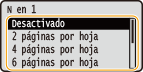 Seleccione si desea imprimir páginas múltiples en una única hoja asignándolas secuencialmente desde la parte superior izquierda. Por ejemplo, para imprimir cuatro páginas en una única hoja, seleccione <4 páginas por hoja>. Utilice