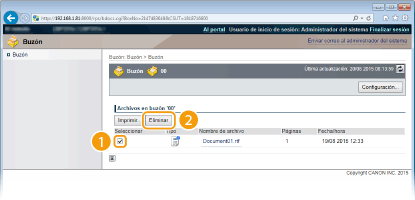 Seleccione la casilla de verificación del documento para eliminar y pulse [Eliminar].