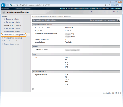 Se muestra el estado de todos los trabajos de impresión independientemente de las opciones de la Gestión de ID de departamentos.