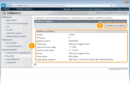 Compruebe los detalles del certificado y haga clic en [Verificación de certificado].