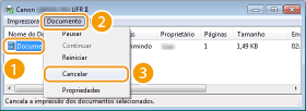 Cancelando a partir de um aplicativoEm alguns aplicativos, uma tela como a mostrada abaixo é exibida. Você pode cancelar a impressão clicando em [Cancelar].