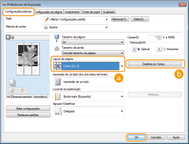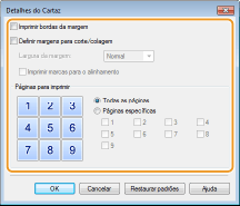 A tela a seguir permite fazer as configurações de bordas e margens. Para mais informações, clique em [Ajuda] na tela do driver de impressora.