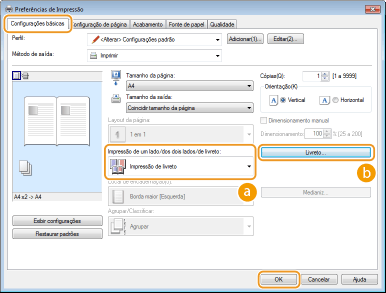 Clique em [Livreto] para especificar as configurações detalhadas conforme necessário