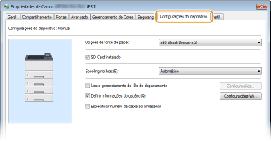 Clique na guia [Configurações do dispositivo] e especifique as configurações necessárias.