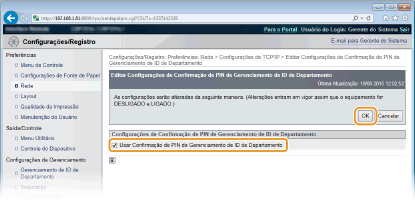 Marque a caixa de seleção [Usar Confirmação de PIN de Gerenciamento de ID de Departamento]