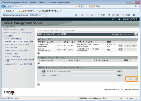ファイルを指定するときアプリケーションファイルとライセンスファイルの両方を指定してください。