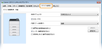 [デバイスの設定]タブをクリックし、必要な設定をする