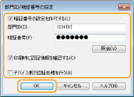 クリックすると、正しいIDと暗証番号が入力されているか確認できます。ただし、本機とパソコンをUSBまたはWSD(Web Services on Devices)ポートで接続しているときは使用できません。