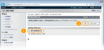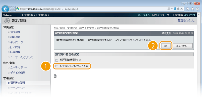 チェックマークを外した場合、BMLinkSなどの部門別ID管理に対応していない方法での印刷や、管理者モードでログインしたリモートUIからのダイレクトプリントもできなくなります。