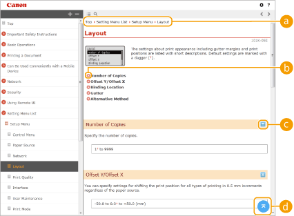 Click to set parameters to determine how the User's Guide is displayed, such as character size or layout.