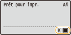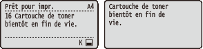 Lorsque le message <Cartouche de toner bientôt en fin de vie.> s'affiche, l'impression est temporairement arrêtée. Pour reprendre l'impression, appuyez sur