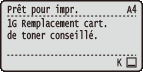 ( ).Le message affiché dépend du réglage de <Etape avertissement> dans le menu des réglages du panneau de commande. Etape avertissement