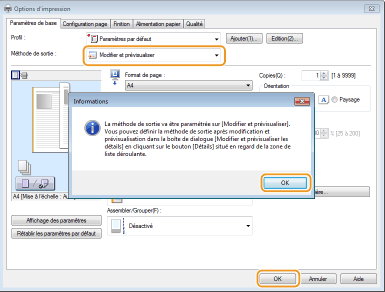Sélectionnez [Modifier et prévisualiser], dans [Méthode de sortie].