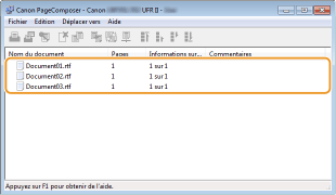 Pour plus d'informations, cliquez sur [Aide] dans l'écran de la fonction Canon PageComposer.