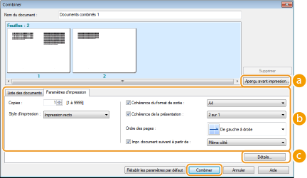 Modifiez les réglages si nécessaire et cliquez sur [Combiner].
