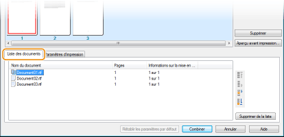 Dans la liste [Nom du document], sélectionnez la tâche d'impression combinant les documents et cliquez sur