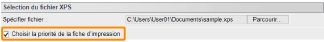 Spécification des réglages d'impression pour les fichiers XPSDécochez la case [Choisir la priorité de la fiche d'impression]. Si la case est cochée, certaines options ne sont pas disponibles.