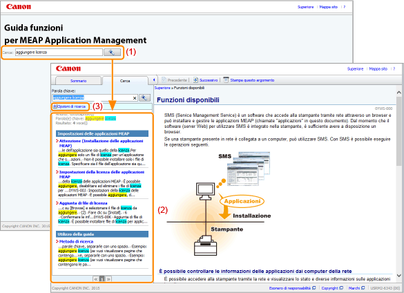 Inserendo una stringa di caratteri in [Cerca] nella pagina principale oppure nella casella di testo [Parola chiave] del pannello di ricerca e poi facendo clic su [