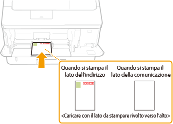 Prima di caricare buste o cartoline, effettuare qualche preparazione come appiattire le arricciature. Prestare inoltre attenzione all'orientamento delle buste e cartoline e al lato di stampa. Notare che né le buste né le cartoline possono essere caricate nel cassetto della carta.